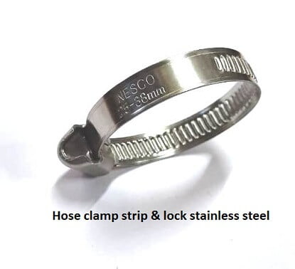 - Clamps strip and lock is stainless steel grade 202 .The screw is galvanized mild steel with a combination head.